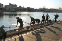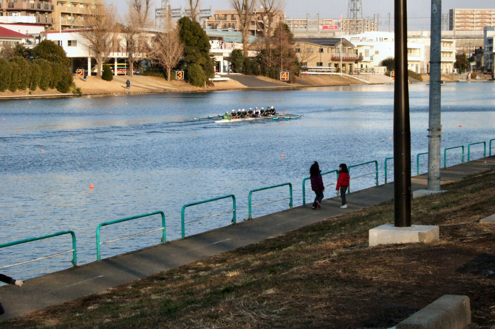 戸田ロングレースでは1杯づつ、順次スタートです。前は海洋大、後ろはMBC、理想は後ろを離して、前に追いつけです。 |